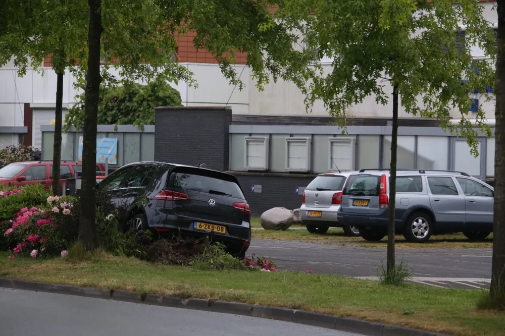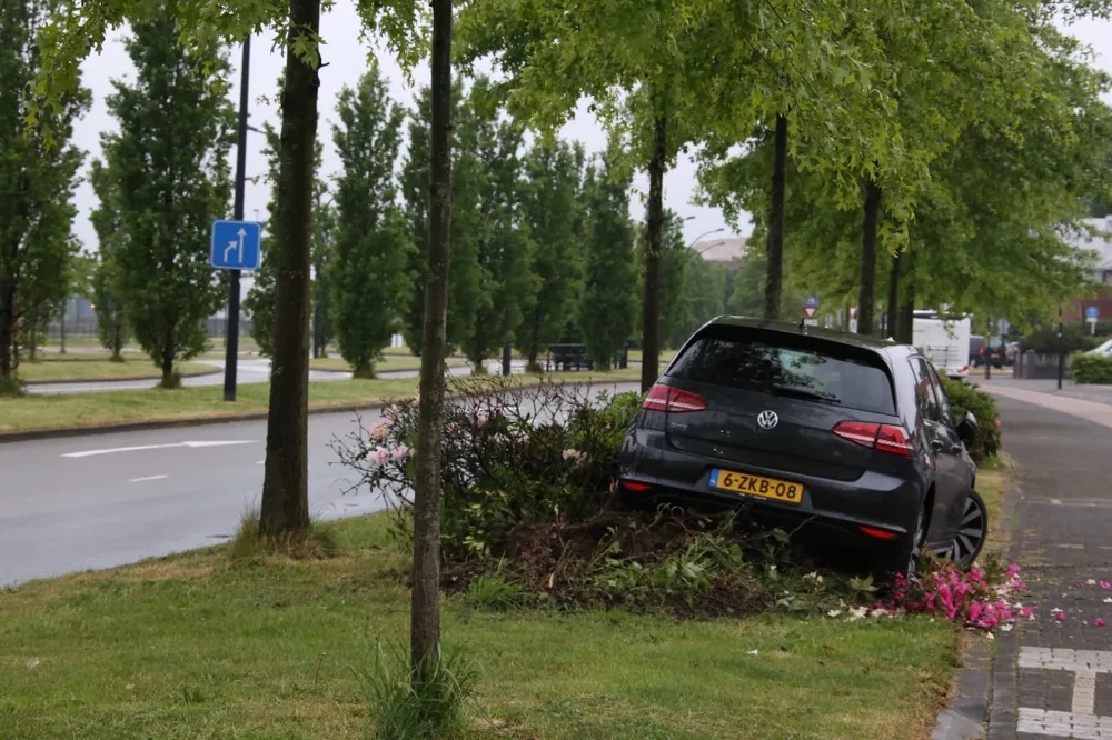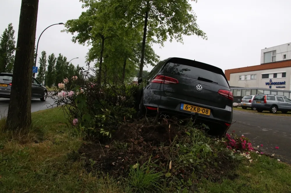Ter plaatse bleek er een auto uit de bocht gevlogen te zijn, de auto is over een bloemenperk gereden voordat hij tot stilstand kwam. De bestuurder van de auto is gearresteerd