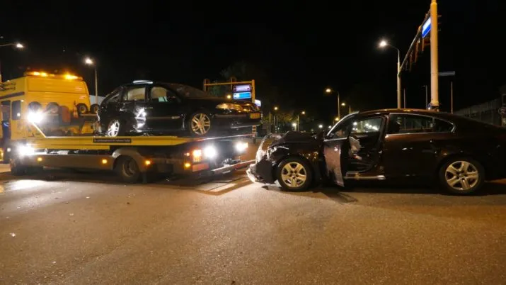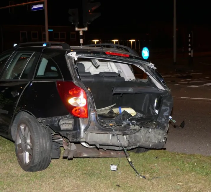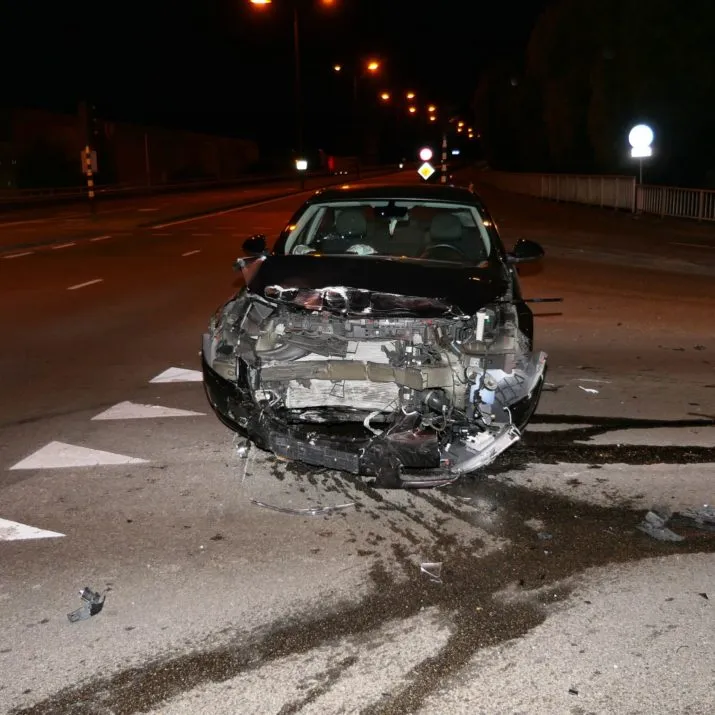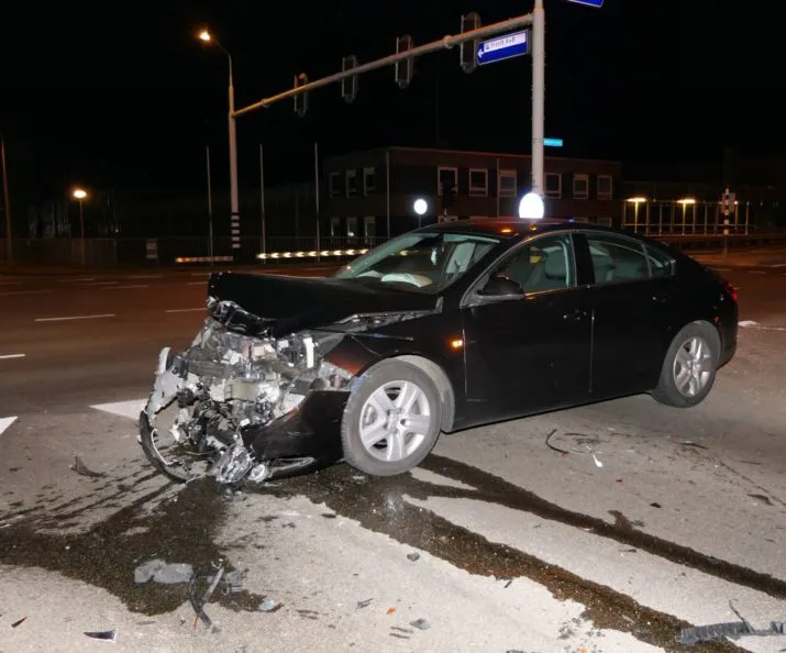 Vannacht zijn bij een botsing op de Nijverheidsweg-Noord/Radiumweg twee auto's op elkaar geklapt. De schade was groot, maar er vielen geen gewonden.