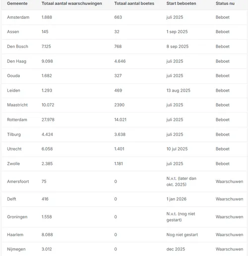 Sinds juli 2025 zijn de meeste steden echter overgegaan op handhaving via